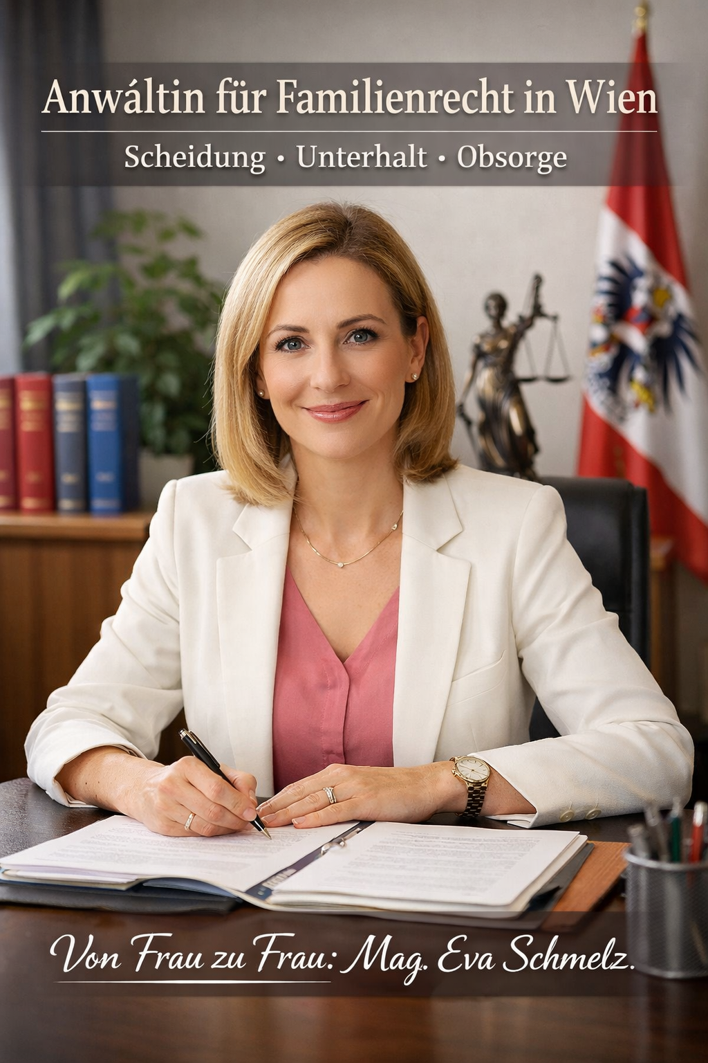 Was Von Frau zu Frau: Die Wiener Familienrechtsexpertin Mag. Eva Schmelz besonders auszeichnet, ist die Kombination aus Fachwissen und persönlicher Begleitung. Mandantinnen werden nicht mit juristischen Fachbegriffen allein gelassen, sondern verständlich und transparent über ihre Möglichkeiten informiert.